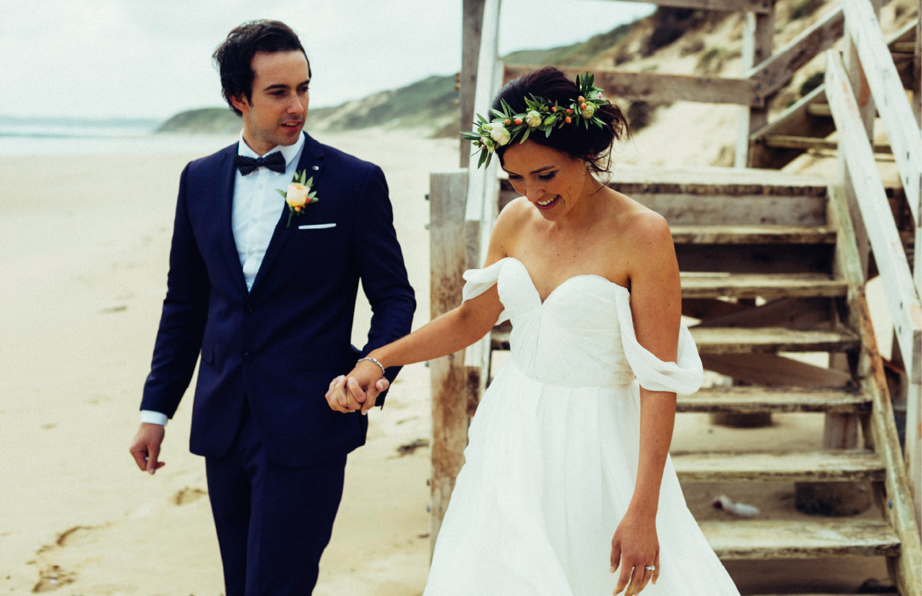 After the ceremony we ventured to the Forrest Caves, on Phillip Island. We literally had the entire beach to ourselves. Elise didn’t let the wind (or her wet dress (it floated into a rock pool when I got them to stand at the top of the rocks!!) deter her. You’ll also notice a very talented lady appear in a shot. I got to shoot alongside Rachael, from Rachael Mary Films. I seriously felt like I’d known this girl for a while, we were very similar. I adore her filming style.